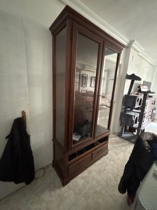 Elegante vitrina con estructura de madera y puertas de cristal. - Diseño clásico y funcional. - Amplio espacio de almacenamiento. - Ideal para exhibir objetos decorativos. Precio negociable