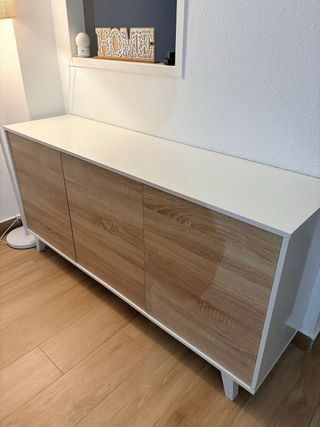 Mueble de entrada de estilo nórdico con un acabado en madera natural. Presenta un desperfecto en una esquina. DESPERFECTO EN ESQUINA MUCHO STOCK CON DESPERFECTO PARECIDO FOTO DEL DESPERFECTO EN ANUNCIO - Diseño moderno y funcional. - Materiales de calidad.