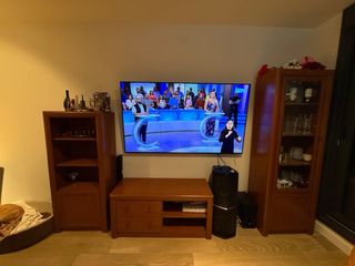 Se regala Conjunto de muebles de salón en color negro y verde. -Se encuentra en Ciempozuelos. -Venir y desmontar. - Vitrina con puertas de cristal. - Mueble bajo con compartimentos y cajones. - Estantería superior con espacio para libros y objetos decorativos. - Incluye mueble de televisión.