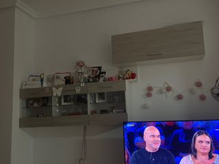 Mueble de salón con varios compartimentos y estantes. - Diseño moderno. - Acabado en madera clara. - Incluye vitrinas. - Y luces 100€ mesa y muebles de salón completos Mueble con cristales 140cm largo , ancho 49 Mueble de televisión, largo 119cm Soporte del suelo 131cm Estantería pared 150cm Mueble pared 99cm largo , de ancho 35 cm Lo específico más, porque las medidas que me deja poner Wallapop son básicas Quien lo quiera tiene que venir al Domicilio a desmontarlo y llevárselo