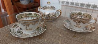 Precioso juego de 2 tazas de cafe con azucarero y jarrita. Esta nuevo,sin usar. siempre guardado en vitrina.