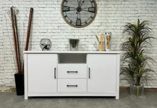 Elegante vitrina con un diseño moderno que combina acabados en madera y blanco. - Puertas de cristal para exhibir tus objetos. - Dos cajones superiores. - Dos puertas inferiores con tiradores metálicos. Están en tienda de c/Avenida Santander 195,Valladolid. Horario de lunes a viernes de 10:00-13:30 16:30-19:30 sábado de 10:00-13:30 Hacemos entregas a domicilio. Información al 629 721 472. 🔥🔥 Y POR UN COSTE ADICIONAL ¡TE LO LLEVAMOS A CASA! 🔥🔥