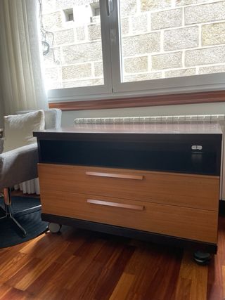Precioso mueble de salón que puede ser trasladado separando módulo superior de inferior (puertas de madera de puertas de cristal) . En muy buen estado. Madera de roble rallada con rebordes en cordón trenzado. Seis compartimentos. Elegante, duradero. Tiene mínimas muescas en las patas, por haber sido movido..tal como se muestra en las fotos. Entregamos en domicilio en Vigo, segundo sin ascensor.