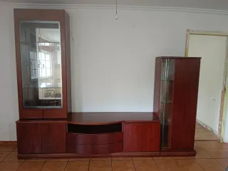 Conjunto de muebles de salón en madera de cerezo. Incluye vitrina alta, mueble bajo y vitrina de dos puertas. - Diseño elegante y funcional. - Acabado en madera de cerezo. - Puertas de cristal en las vitrinas. Las medidas son mueble tv 1,20x0,50. Vitrina con 2 estantes 1,00x1,50 y mueble alto 1,90x0;50 ademas una estanteria de 1,36. Opción a mesa de comedor con 4 sillas por 100€ y regalo los cojines declas sillas de la foto pero si te lo llevas todo te lo dejo por 300€. En buen estado, vendo por cambio de decoración. URGE VENTA SE ACEPTAN OFERTAS