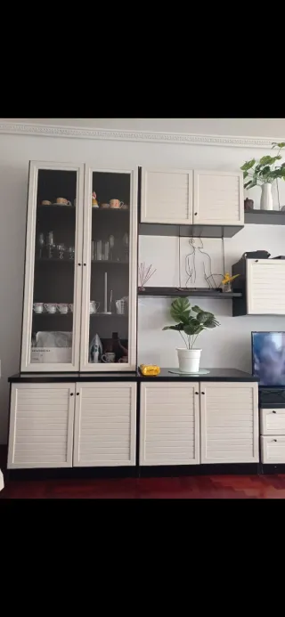 Se vende mueble de salón clásico de madera en muy buen estado. 📏 Medidas: Alto: 213 cm Ancho: 259 cm Fondo: 49 cm Es un mueble modular, se puede desmontar en varias piezas para facilitar el transporte. Muy sólido y funcional, con vitrinas, cajones y mucho espacio de almacenaje. Ideal para: Piso amplio Segunda vivienda Casa rural Proyecto de restauración / pintar en blanco estilo vintage ***RECOGIDA EN VIGO*** #mueblesalon #mueblemodular #clasico #madera #vintage #almacenaje