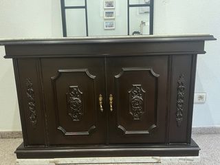 Aparador y espejo de madera con mármol