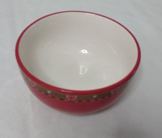 Bol de cerámica con un diseño encantador. Su exterior es de un vibrante color rojo, adornado con una banda decorativa. Esta banda presenta un patrón de puntadas negras y pequeños corazones blancos y rosas, con corazones rojos más grandes que le dan un toque especial. - Diseño con corazones y puntadas. Medidas, alto 8 cm., circulo de arriba 15 cm. y circulo de la base 7´5 cm.