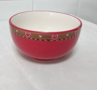 Bol rojo de cerámica con corazones