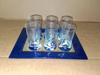 Juego 6 Chupitos con Bandeja Cristal Azul