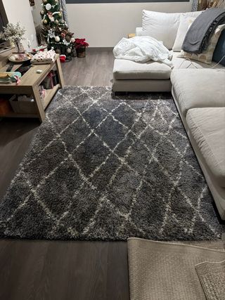 Alfombra de salón con un diseño moderno y acogedor. Su textura suave la hace muy agradable al tacto. - Diseño de rombos en contraste. - Tacto mullido y confortable.