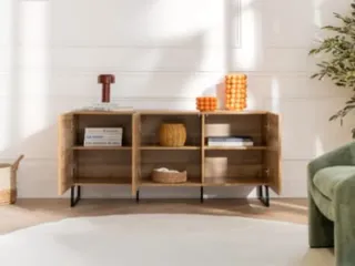 Elegante aparador con un diseño contemporáneo que combina la calidez de la madera con la robustez del metal. - Acabado en madera con veta marcada. - Patas y estructura de metal negro. - Tres puertas frontales. - Envios a toda Galicia 🚚 - Pago contra reembolso 💲 REF:B58010