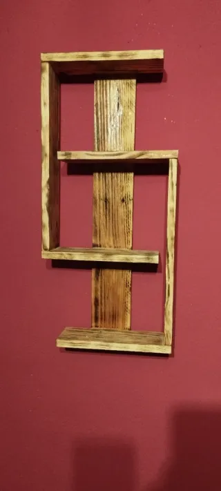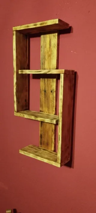 Estantería decorativa hecha a mano con madera de palet. Su diseño rústico le da un toque único a cualquier espacio. Fabricada con madera de palet.