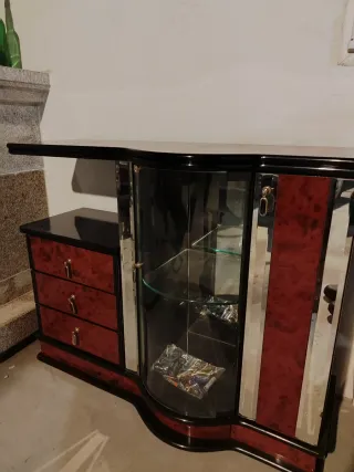 Elegante mueble de salón de estilo clásico. Ideal para una casa con salón grande. Tiene mucho espacio para guardar cosas, estanterías, vitrina, mueble bar y cajones. Entrega a domicilio y montaje gratis en Xinzo de Limia y alrededores. También se retiran gratis los muebles viejos si quieren.