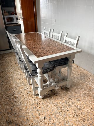 Mesa Comedor Madera y Granito + 6 Sillas