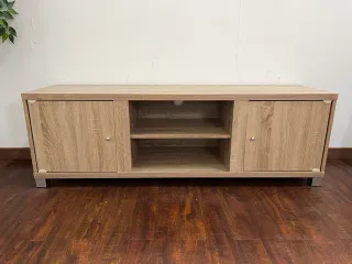 Bonito mueble de TV en tonos madera y blanco. Ideal para colocar tu televisor y otros aparatos electrónicos. - Dos puertas con espacio de almacenaje. - Un estante interior. - Envíos a toda Galicia 🚚 - Pago contra reembolso 💲 REF: TV DELA 150