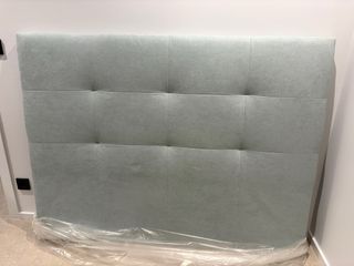 Cabecero tapizado para cama 150cm en color verde agua. Estructura interna de madera con medidas de 160cm x 120cm. Está completamente sin estrenar.