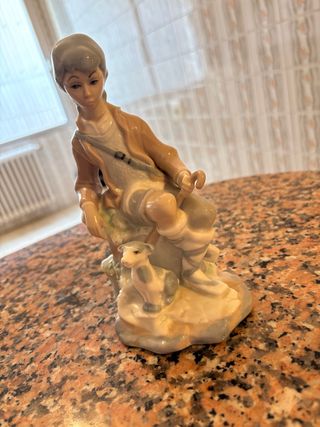 Preciosa figura de porcelana de Casades que representa a un niño pastor con su cordero. Una pieza delicada y con gran detalle. - Figura de niño pastor con cordero. - Fabricada en porcelana. - Diseño de la marca Casades.