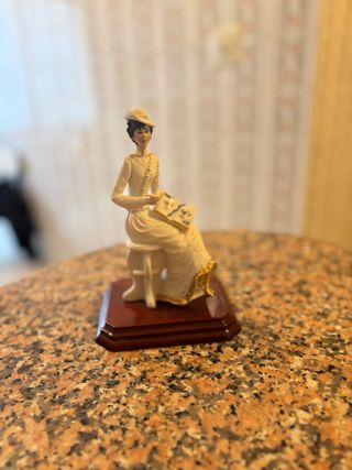 Figura Porcelana Dama Leyendo Beige y Oro