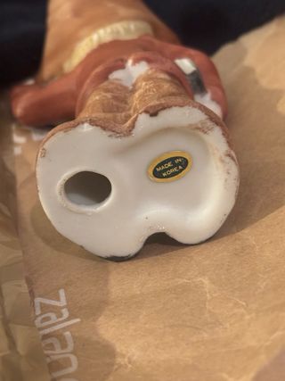 Encantadora figura de porcelana que representa a un niño tocando el acordeón, acompañado por un perro. - Detalle de un niño con acordeón. - Incluye una figura de perro. - Base decorativa con elementos verdes.