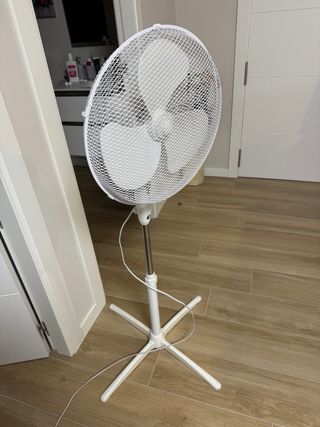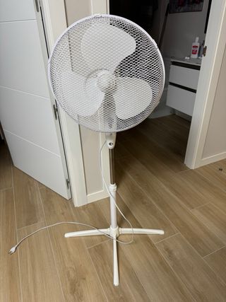 Ventilador de pie blanco. Lo tengo en Vigo