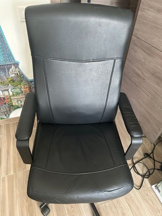 Silla de escritorio Millberget de Ikea muy cómoda. Signos de desgaste debido a que se ha usado para teletrabajo, pero no esta rota. El mecanismo funciona correctamente. - Respaldo alto. - Reposabrazos. - Base giratoria con ruedas. Precio negociable. SOLO ENTREGA EN MANO.