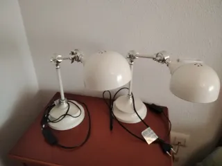 Conjunto de tres lámparas de mesilla con un diseño clásico y elegante.Se entrega como se ve en las fotos, el precio es por las tres,(NO LAS ENVIO) entrega en mano,cualquier duda preguntar,mas cosas en mi perfil. - Color blanco. - Fabricadas en metal y plástico.