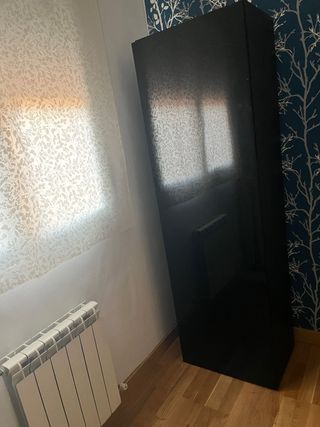 Mueble de salón con acabado en negro brillo. - Diseño moderno y elegante. - Ideal para complementar tu espacio. Compuesto de aparador , vitrina , columna y mueble bajo tv Ahora mismo en las fotos no esta montado , esta suelto y no se aprecia como es realmente