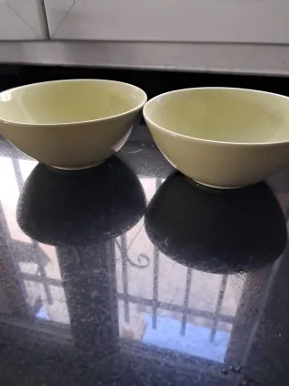Set de dos cuencos de cerámica en un bonito color verde claro - Diseño elegante y versátil. - Ideales para cereales, sopas o postres.