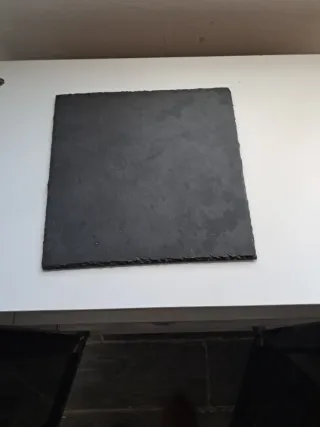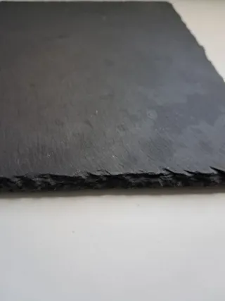 Elegante plato de pizarra con un acabado rústico y natural. Ideal para tabla quesos,patés, postres... - Borde irregular característico de la pizarra. - Superficie lisa para servir alimentos.