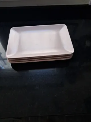 Conjunto de 5 platos rectangulares de color rosa. Perfectas como bandeja o para plato combinado o desayuno. - Material resistente. - Diseño moderno y elegante.