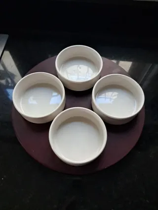 Set de plato giratorio con cuatro cuencos individuales. Ideal aperitivo o salsas... - Plato giratorio de madera. - Cuatro cuencos de cerámica blanca.