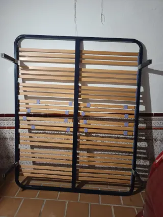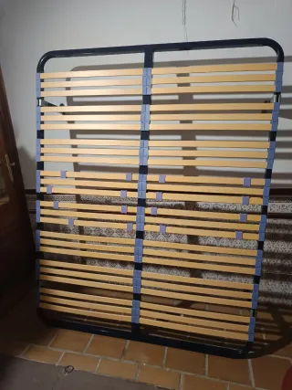 Somier con listones de madera multilaminas se puede dar más firmeza o menos y estructura metálica incluye patas. - Medidas: 150x190 cm. - Listones de madera. - Estructura metálica resistente.