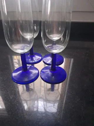 Set de copas de cava con base azul y cuerpo transparente. Ideales para celebraciones. - Diseño elegante. - Materiales de calidad.