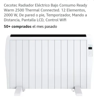 Radiador eléctrico Cecotec Ready Warm 2500 con 12 elementos y 2000W de potencia. Es de bajo consumo y se puede colocar de pie o en la pared. Incluye temporizador, mando a distancia y pantalla LCD con control Wifi. - 12 elementos - 2000 W - Bajo consumo - Mando a distancia - Control Wifi