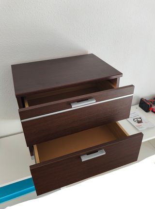 Mesa de rincon o mesa baja. Madera acabado cerezo. Como nueva a excepcion de dos picadas colo se ve en la ultima foto. Un cajón. Precio original en web, actualmente ronda los 715€