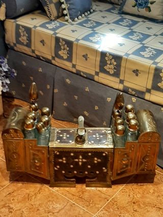 auténtica zapatera de latón madera y nácar comprada en Estambul ideal para decorar cualquier rincón de la casa
