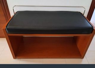 Zapatero de madera con un cojín grueso para mayor comodidad. Ideal para organizar tus zapatos. - Cojín de polipiel. - Estructura de madera. Es buena madera porque pesa demasiado. Lo vendo porque me es muy grande para el pasillo