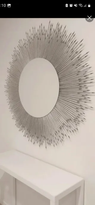Elegante espejo decorativo con un diseño inspirado en un erizo. Su acabado en tonos plateados y grises le da un toque moderno y sofisticado. Medidas: 80 cms de diámetro Espejo: 40 cms de diametro. Incluido anclaje para colgar Se realizan a la medida y color deseado. Entrega en mano en zona norte y sur de Madrid. Se hacen envíos. Más modelos en mi perfil. Decoración, zarahome, maison du monde, ikea, hemnes, muebles, sofa, casa, regalo, salón, entrada, vintage, diseño, cama, vestidor, ventana, recibidor, leroy, novedad, tendencia, nuevo, zapatero, cosas de casa, el corte ingles, eci