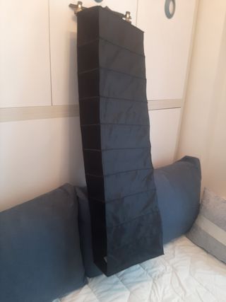 Zapatero de tela para colgar de una barra,color negro para 10 zapatos o para guardar pañuelos o cosas,buen estado.