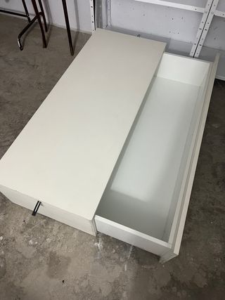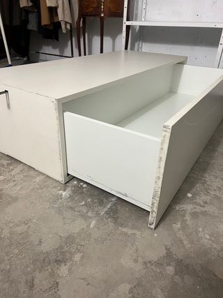 Mueble blanco de madera para ponerlo debajo de la cama o para en televisor incluso para mesa. Lleva un cajon que se puede abrir facilmente Las medidas son de largo 120 ancho 48 y alto 31,5 aprox