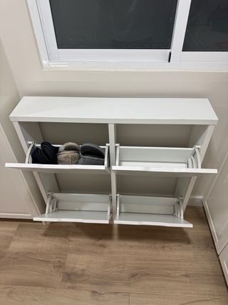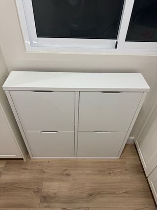 Zapatero de la serie Hemnes de Ikea. Un mueble funcional y elegante para organizar tus zapatos. - Diseño de cuatro compartimentos. - Tiradores metálicos. Me queda uno