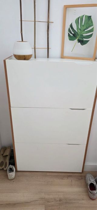 Zapatero blanco y madera, en la foto hay tres