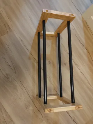 Conjunto de perchero y zapatero de bambú. Ideales para un toque rústico y natural en tu hogar. - Perchero de pie con múltiples brazos para colgar ropa. - Zapatero de dos niveles para organizar el calzado. - Piezas resistentes y en buen estado.