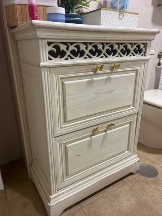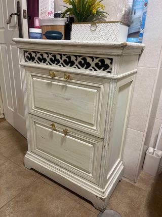 Sombrerero blanco antiguo y mueble zapatero.