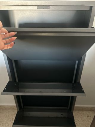 GENTE DE BADAJOZ PARA RECOGERLO. Zapatero de acero con un diseño moderno y funcional. - Tres niveles para organizar tus zapatos. - Acabado en color gris.