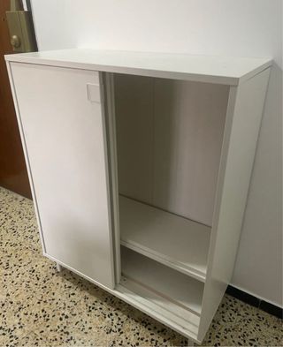 En la imagen sale uno, pero vendo dos. - Acabado en color blanco. - Puertas correderas para fácil acceso. precio por los dos. con las patas