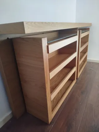 Bonitos zapateros de la marca IKEA. Tiene tres cajones y un estante superior. Estructura de madera. Se encuentran en buen estado. - Diseño compacto y elegante. - Ideal para organizar el calzado. - Fácil de montar y desmontar.