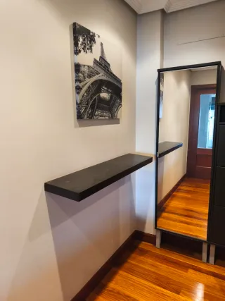 Conjunto de mueble de entrada con espejo y zapatero. - Acabado en madera y blanco. - Diseño moderno y funcional. - Zapatero 89,60€ medidas 70*120*18