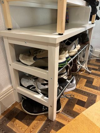 Banco zapatero de la serie HEMNES de IKEA. Tiene algunas marcas de uso pero por el resto está en buen estado.