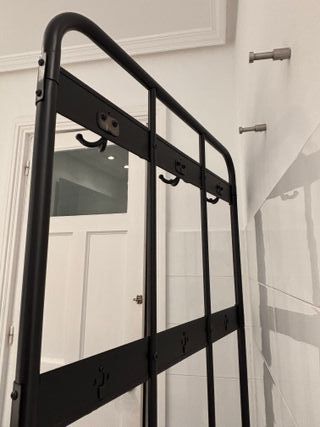 Mueble de entrada IKEA con perchero y zapatero. - Estructura metálica y de madera. - Diseño moderno en color negro